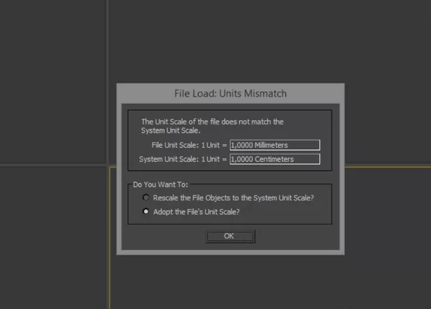 ако в Customize->Units Setup укажеш мерните единици, Мах вече започва да ги ползва и те ще са такива всеки път когато стартираш Мах (това се прави еднократно). Когато обаче опитваш да отвориш/присъединиш файл, който е направен в други мерни единици, Мах открива тази разлика и веднага излиза съобщението от скрииншота, който си направил. В него имаш вариант за два избора :