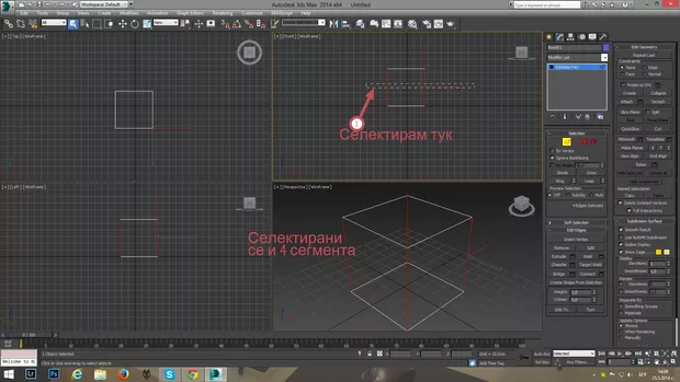 Здравейте, Създал съм елемент куб / Box, без да е разделен на полигони, който е превърнат в редактируем обект. Искам да селектирам само предните два сегмента. Сложил съм отметка на Ignore Backfacing. Обаче като селектирам двата вертикални сегмента във вюпорт Front , се селектират и задните. Как мога да селектирам само предните сегменти? Благодаря