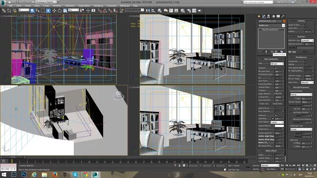 Safe Frames се активират с клавишната комбинация Shift+F, настройките и активирането на вътрешните рамки става от [+] менюто пред името на viewport-a->Configure Viewports-> табулатора Safe Frames. Като значението име е следното - най-външната жълта рамка е Live Area и определя видимата част след рендера; следващата синя рамка - Action Safe - между нея и рамката на Live Area е площта, която е в края на монитора и се очаква там да има разтегляне на изображението (това беше полезно и приложимо, когато мониторите не бяха плоски ;) ); кафява рамка - Title Safe - определя площта, където би трябвало да се появят субтитрите; розовата (най - вътрешната), която не е активирана в сцената от която е screenshot-a, е User Safe - определя вътрешна площ, дефинирана от потребителя за специфични нужди. Моята лична гледна точка е, че само Live Area има практическо значени, но за конкретните специфични нужди модат да се включват/изключват и другите.