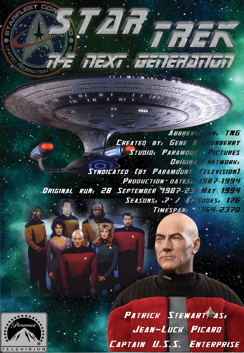 Помислете върху основния фокус на постера. В момента имате 3 ключови обекта - космическия кораб, екип и главния актьор (П. Стюарт). Така поднесени се 'бият' за внимание. Задайте следният въпрос: "къде искам очите на зрителя да се съсредоточат най-много?"