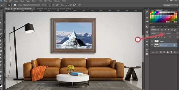 Разбрах от урока за Gradient Tool как Background-а да го превърна в леър и тогава имам възможност да оправя Opacity, но в този случай се променя целият Background, а не само сянката под рамката, която всъщност искам да променя.