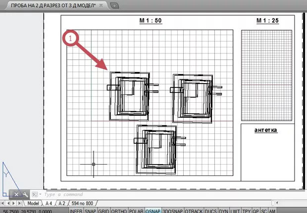Проблема най - вероятно тук проблема е в завъртян Viewcube за дадения viewport и затова се виждат така нещата, НО ако не ти представлява проблем прати ми чертежа на [email protected] за да го погледна, като ми опишеш къде точно искаш да е разреза.