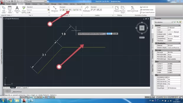 Има ли аналогична функция на DIMCONTINUE (1), с която да продължа оразмеряването, само че в избрана от мен посока (2)?