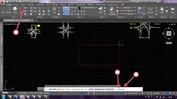 Здравейте, искам да начертая правоъгълник с точни размери като използвам бутона Rectangular.Знам,че в това действие няма нищо сложно, но проблемът ми се появява когато започна да въвеждам стойностите.Първо изписвам хоризонталната стойност и след това натискам бутона Tab от клавиатурата, за да въведа вертикалната стойност, но не става, т.е. не мога да изпиша стойността отделно (Да уточня, че до скоро командата работеше съвсем наред.Сигурно без да забележа съм натиснала нещо, което не трябва.).Примерно искам правоъгълникът да е с размери 420 на 297 единици (на приложената снимка м/у стрелки (2) и (3) съм натиснала бутона Tab, но въпреки това двете числа се изписват едно до друго.