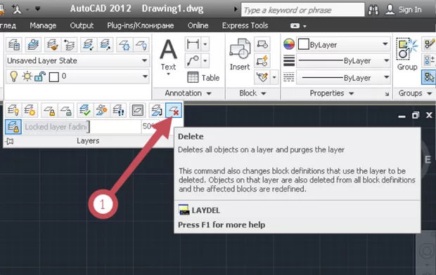 Как да изтрием слой чрез мениждъра със слоеве, ако в слоя има обекти?