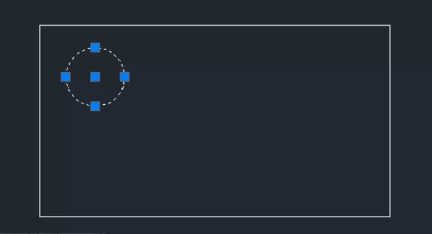 Тогава бих стартирал директно командата circle която по подразбиране изчертава окръжност по зададен център и радиус след което ще натисна десен бутон на мишката и ще избера From ( снимка 4 позиция 1 ) след което AutoCAD ще ме попита от коя точка точно да отскоча аз ще му кажа от пак от същата точка както посочих в предходния пример ( снимка 5 позиция 1 ) и след това ще ме попита какво да е отстоянието от тази точка ще задам с относителни координати центъра на окръжността така че да имам след изчертаването предватителното отстояние от стените на правоъгълника .... а именно @3,-3 ( снимка 5 позиция 2 ) след което вече ще съм "скочил" в точката която е център на окръжността ... след което както се вижда и на снимка 5 позиция 3 съм още в режим на въвеждане на данни и AutoCAD ме пита за радиуса на окръжността задавам 2 и резултата е на снимка 6.