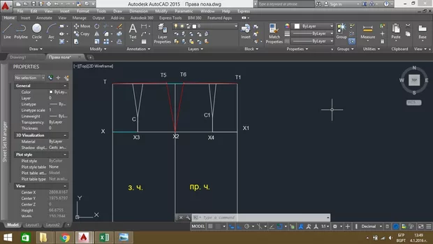 Имам следния въпрос: как да направя неправилна дъга? Трябва да съединя т.Т5 и Х2, както и Т5 и Т (какато са на чертежа на ръка) с неправилна дъга. Червените линии в AutoCAD чертежа трябва да са като на чертежа на ръка. Има ли някаква възможност права линия да я придърпам в произволна точка и изкривя както аз искам (със заобляния не ми се получава)? Или друг начин?