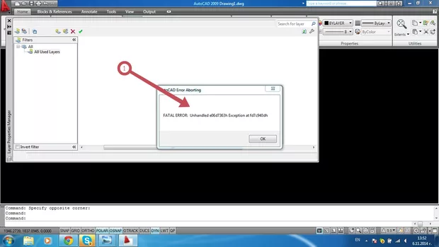 Здравей, само в този случай ли ти "гърми" AutoCAD - а.Така като гледам даже е няма много създадени layer - и ( чертежа е новоотворен), дане си закачил подложка или ?Дай малко повече подробности.Въпреки че мойте предположения са от версията - 2009 никога не съм я харесвал там точно стана въвеждането на доста нови неща в CAD и поне според мен е доста бъгава.