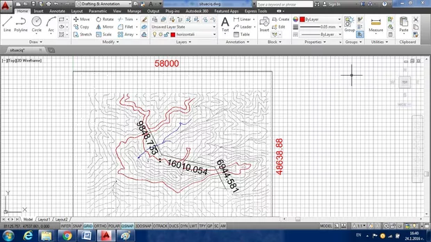 Здравейте, проблема е следния. /Чертежа е с учебна цел/. Имам си карта с хоризонтали на хартиен носител. Сложила съм си я като подложка от pdf файл, сканиран