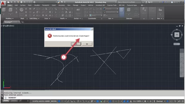 Защо, моля, не се получава BOUNDARY при кривите линии, а ми се предлага да направя регион, а при правите се получава BOUNDARY (преместил съм го)? Благодаря.