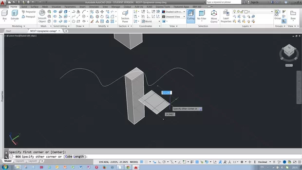 Как да започна изчертаване първо на вертикалната страна на паралелепипеда (успоредно на YZ) - при мен винаги започва хоризонтално (успоредно на XY) и не успявам да открия как да го променя. Реферирам към 6:46 от видеото - начало на изчертаване на паралелепипед, с прилепване към среда на лице. Acad 2016.