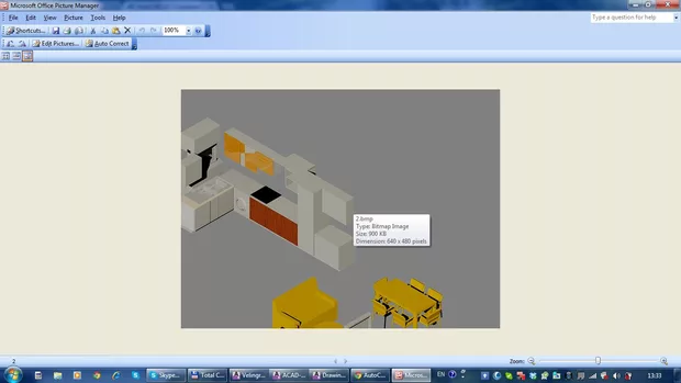 Другият ми проблем е, че като задам перспектива и чертежа ми се превръща в точка, която ако се опитам да увелича само се мести по екрана и в един момент изчезва. За малки помещения като горното аксонометрия или перспектива не е голяма разликата, но за по-големи помещения или за сграда е фатално. Вероятно някъде сам разместила настройките, защото отворих нов чертеж, начертах няколко фигури и перспективата работи без да ми бяга от екрана.