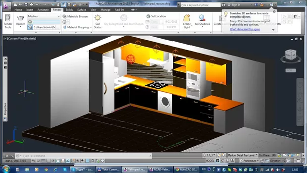 До един момент работеше добре. Дори да започне видимо рендериране, малко преди да свърши изведнъж започва да го трие. Преди няколко дни работеше добре /работното копие/. От вчера е страшна мъка. Изпращам и един от последните рендери, случайно направен, който обаче не е в перспектива.