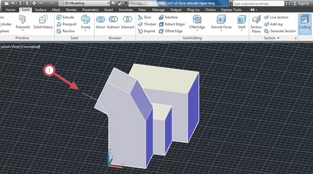 версия 2012- не можах да разбера защо екструдирането не продължи по цялата линия, може би защото начертах линия с по-къси сегменти от самото лице?
