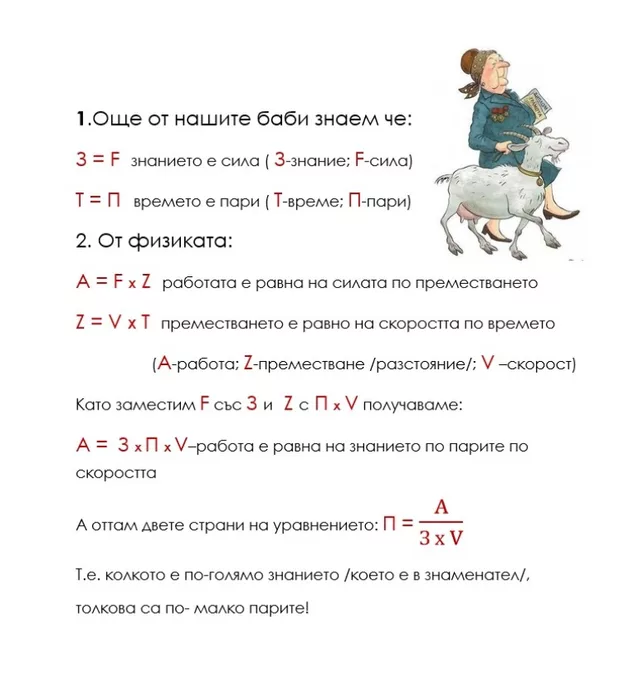 В този "софизъм" няма никаква уловка. Това е най-обикновена манипулация, в която "омешваме" поговорките на нашите баби с формули от физиката и математиката. Интересното обаче е друго: Преди повече от 100 години нашите баби, като доктор Нострадамус, са познали какво ще е положението в България!