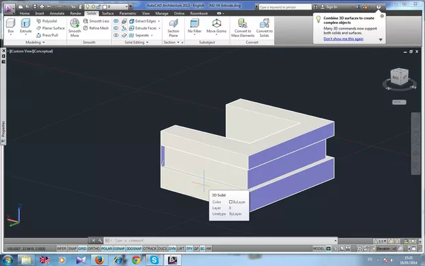 чертая първата фигура, местя координатата ситуирам я по х и у както е в упражнението по повърхноста на солида, чертая правоъгълника, чертая 3Д полилинията екструдирам и правоъгълника не се появява от другата страна, въпреки това продължавам упражнението правя substract на двете фигури и изрязването приключва без да пробие и да се покаже https://upload.aula.bg/screenshot17e5d0-23cf521e.jpg Къде бъркам и защо substract не изрязва напълно първия солид