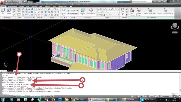 И при мен не се получават операциите. При екструдването при едни и същи действия, на 15 пъти веднъж се получава, и то когато дистанцията се избира като точка по  Z, а не чрез задаване на точно разстояние.  При offset faces обаче няма никакъв резултат.  Как да постигна желания резултат? Работя на AutoCAD 2010.