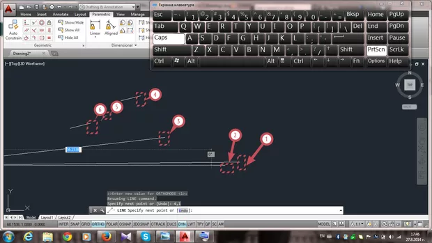 Здравейте!Аз съм начинаеща в чертането с Auto CAD и имам проблем с координатите.1.Не ми прихваща абсолютните координати и при относителните при смяна на посоките отива под ъгъл различен от 90 градуса.Задавам@0,7;след това@7,10 и вече ъгъла не е 90.