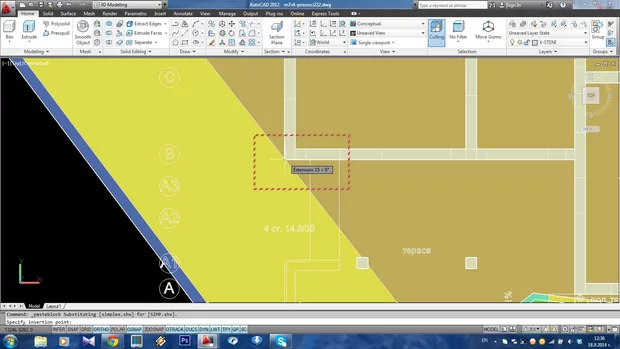 Правя всичко както е показано, но като дам да го копирам от единия чертеж в другия не ми дава прихващане на точката, а съм пуснал за прилепванията? Каква може да е причината? Ако го копирам без прихващане терена ще е някъде във пространството а не както е показано