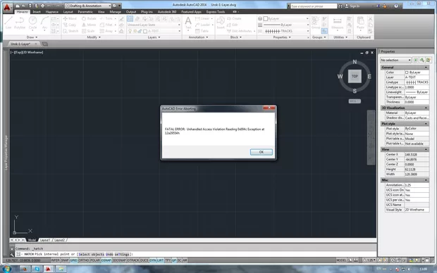 Здравей, тази грешка само при hatch ли ти се появява ? И директно ли се появява след като стартираш командата hatch или я стартираш и цъкнеш някъде по екрана ?