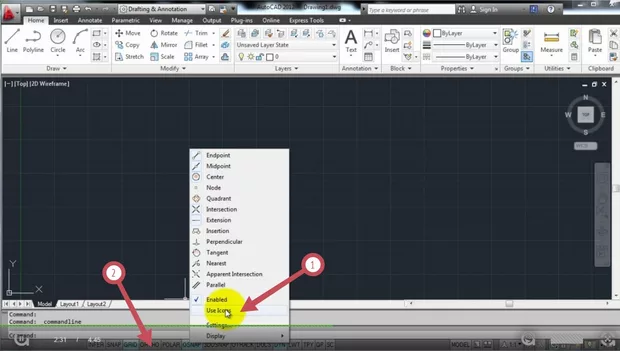 Здравей, на този въпрос мисля наскоро си спомням че дадох отговор,който беше съпроводен също така и с мойто разочарование че в AutoCAD 2015 може да се ползват само иконки, но не и текстов вариант на лентата за състояние ( няма я отметката на use icon :( ).Ето и още нещо което също не ми харесва в 2015: https://aula.bg/question#id-110284800001 .