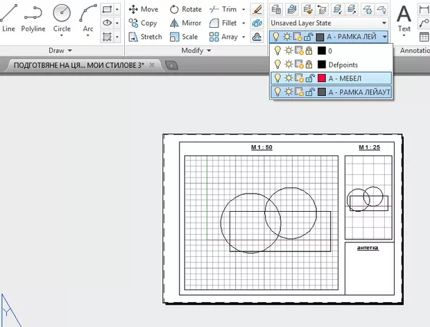 Здравейте ! Започнах моя шаблон от стандартния шаблон acad. Направих си мои стилове, лейаут за два мащаба за А 4, с антетка, рамката я сложих в слой за рамка и преди да запаметя в шаблоните, когато избрах Plot Preview, там не се виждаше нищо. Предполагам, че има някоя настройка, но не съм правила нищо излишно. Бихте ли дали насока къде може да е проблема ?