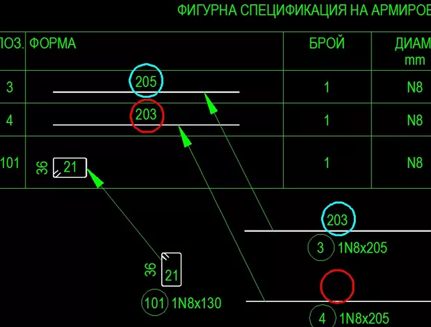 надписът е пренабит (text override) и закръглен. Ако в чертежа няма котировка - в спецификацията