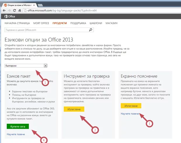 За целта отидете на адрес office.microsoft.com/bg-bg/language-packs/