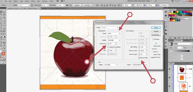 Привет, пробвах в друг нов документ, но за съжаление пак не става. При мен менюто изглежда доста по различно. Ето какво натискам: при мен image trace се казва live trace > tracing options на Present избирам color 16 после слагам 10 цвята и натискам ignore white и нищо не става :(