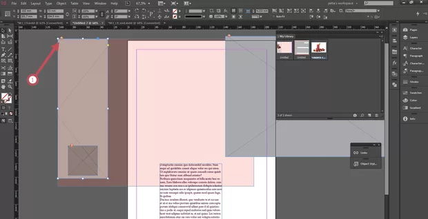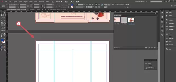 Сега след като маркираш 2 та страница-стрелка 3 , ,долу ти е показано ,че работиш в Page 2-Стрелка 1 , и в кой слой от страницата ,стрелка 2.Малко разбърках последователността на стрелките ,но се надявам с това да си уточниш първо в коя страница работиш ,кое ти е маркирано ,и в кой слои от страницата работиш.Така в ПО горната картинка съм показала в коя страница работиш-Стрелка 3( първа страница) , а в горната стрелка 1 (втора страница).Така си сигурна кой обект от коя страница си маркирала,за да го приплъзнеш в Библиотеките.Ако не можеш да маркираш правилният обект,значи той е под друг обект.Тогава маркираш ,Ctrl,и отново кликаш,така стигаш до по долният обект.