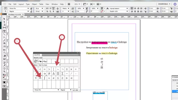 Въпрос към урок: Панелът Glyphs