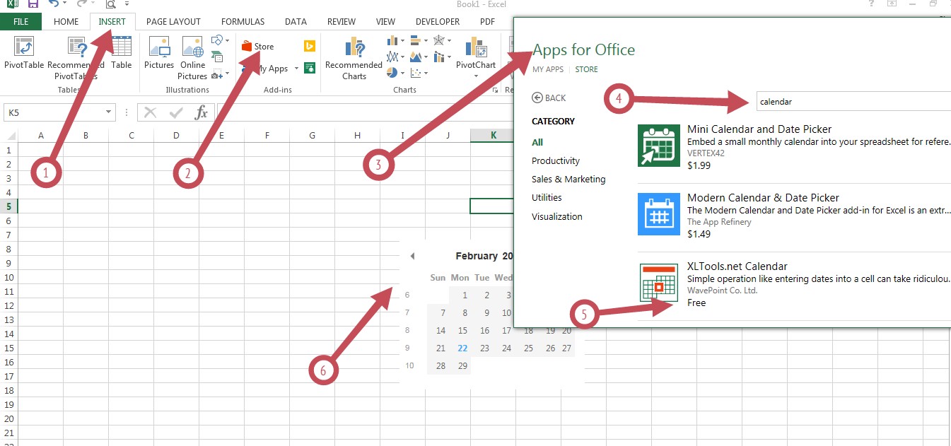 Как да вложа календар в клетка на Excel?