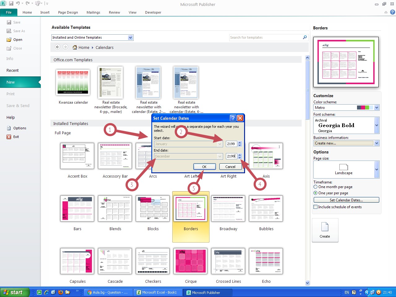 Много важно е да изберем начална и крайна дата в Set Calendar Dates!