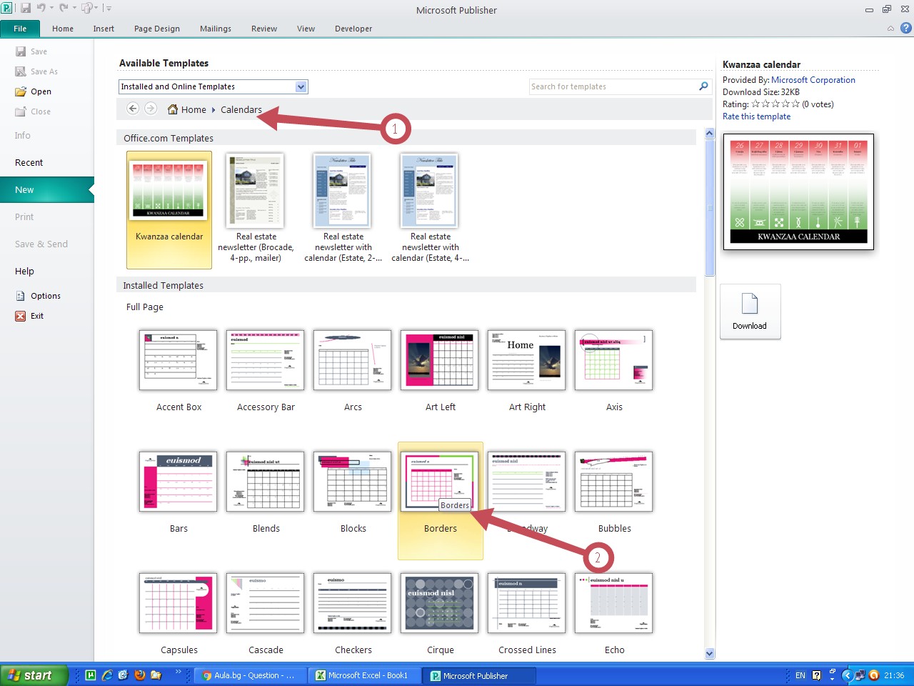 и изберете календар по ваш избор: