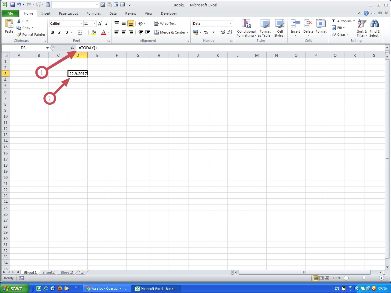Като се следва тази последователност, в клетката, в която се намираме ще се появи календар.