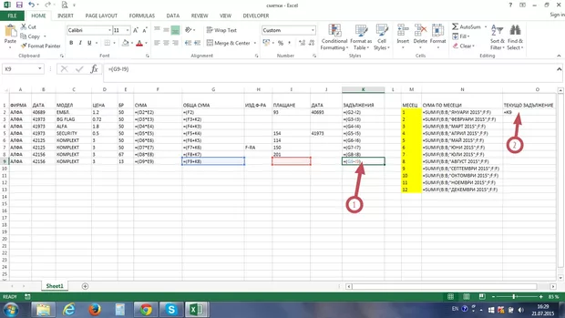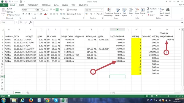 Здравейте. В показаната таблица ежемесечно се въвеждат данни и се изчисляват задълженията. Как мога да задам последната/текуща/ изчислена стойност в колона "К" - задължения, автоматично да се присвоява на клетка $O$2 ?