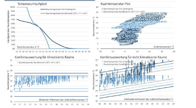 - Показва температури във времето; често добавя ограничителна линия за комфорт.