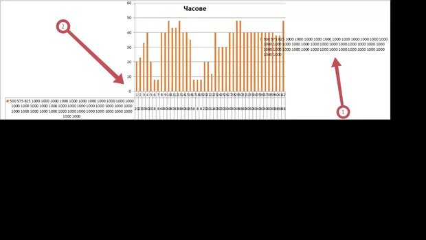 Въпрос: Как да разположа стойностите от десния блок, обозначени със стрелка 1 по вертикалата -ос У?