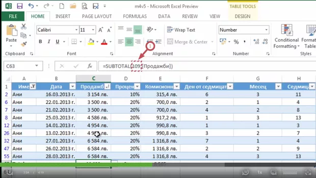 Идеята е 109 - сумирайки числата в определения диапазон да изключва числата които се намират в скрити ( HIDE ) редове, пробвайте да скриете някой ред и ще видите как сумата ще се промени защото вече числото от реда не се взима в тази сума.