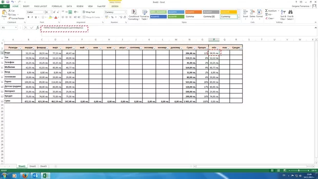 Защо, когато задам функция min и избера диапазон от клетки ми се изписва =MIN(Table 1[@[Януари] :[Декември]]), а не =MIN(B3:M3)