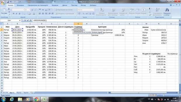 За кои опции става въпрос? При изписване на формулата под нея Ексел подказва подзказка какви параметри са нужни.
