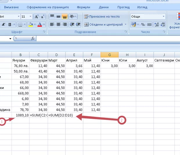 Защо в първата колона ми сумира стойностите, а в следващите не?