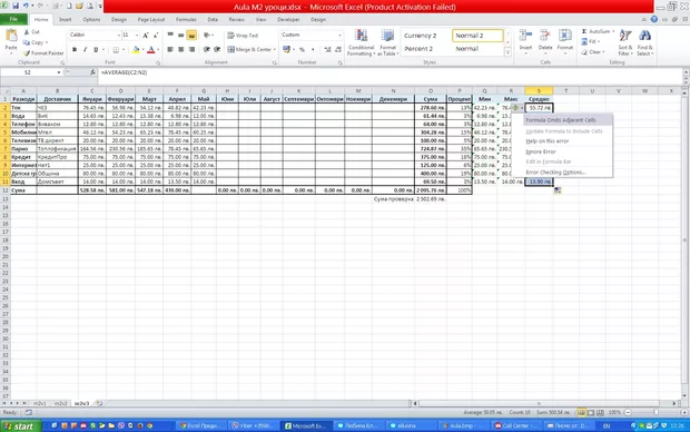 Здравейте, работя с Excel 2010. При използване на функцииите от урока ми се появява индикация за грешка, въпреки че резултатът е коректен. Индикацията изчезва ако избера Ignore error, но все пак защо се появява?