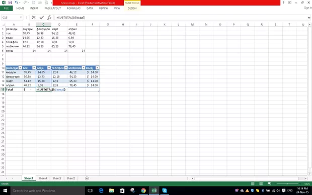 Така че погледни темата и промени стойностите в клетките да НЕ СА 45,50 ами да са 45.50 и тогава ще можеш да оперираш със Subtotal и коя да е друга формула която работи със стойности числа.