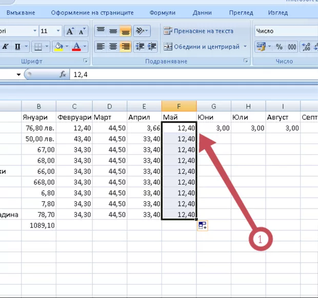 Защо след като съм въвела стойностите, които искам в една колона и след това я маркирам, стойностите се променят и стават еднакви с тази в първата клетка на колоната?
