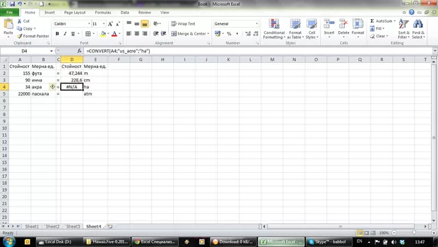 Здравейте, при мен с версия 2010 в падащото меню също няма акра.Аз реших да си поиграя с друго превръщане от супени лъжици в грамове.В падащото меню ги имам.Само, че ексел не ми ги смята , а изписва грешка като при Марина.Какъв е проблема?