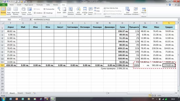 Здравей Николина! Клетките ти са форматирани като Accounting, при която липсата (нула лева), се изписва "-лв.". Ако я форматираш като Currency, ще ти се изпише "0 лв."