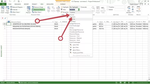 Понеже, когато поисках да сложа филтър "часове", ми излезе надпис, че такъв има, което е вярно (стрелка 1), макар че не знам откъде дойде, тъй като аз не съм го поставял, и трябва да сложа друг с друго име, сложих филтър "часовете" (стрелка 2). Как, моля, да премахна самопоявилия се филтър "часове" за да не слагам филтър с друго име ("часовете", примерно, в случая), а да си сложа аз филтър с име "часове" - не да ми излиза надпис, че не мога, понеже вече го имало? Благодаря.
