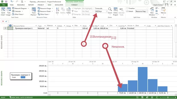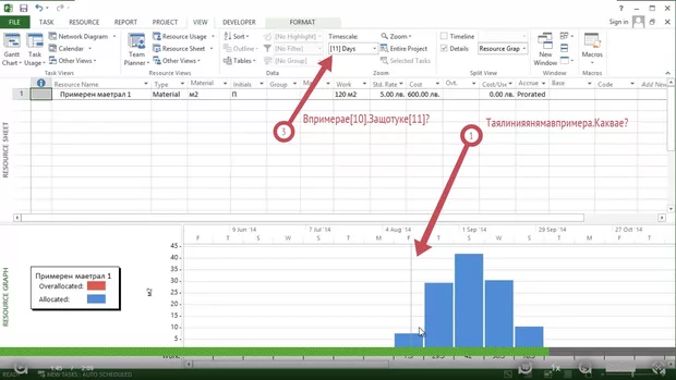 В примера виждам, че се говори основно за това как може да се покаже разпределението на ресурса тип "Material" вав времето.