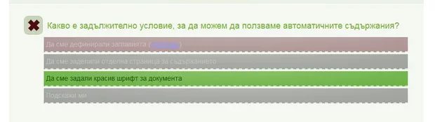 Този въпрос от теста е сгрешен, показва че да сме избрали красив шрифт е верният отговор.